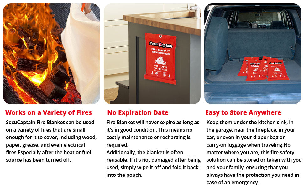 - EMERGENCY FIRE BLANKET SAFETY USE:Pull down, cover slowly(do not pull it back quickly), turn off heat source, lift up the fireproof blanket when the temperature has dropped. Easy to use, no formal training needed. Essential for every household safety as an emergency survival personal protective fire blanket, though we hope you'll never have to use it.Any Question about SecuCaptain fire blankets,contact usand we'll respond within 24 hours on weekdays